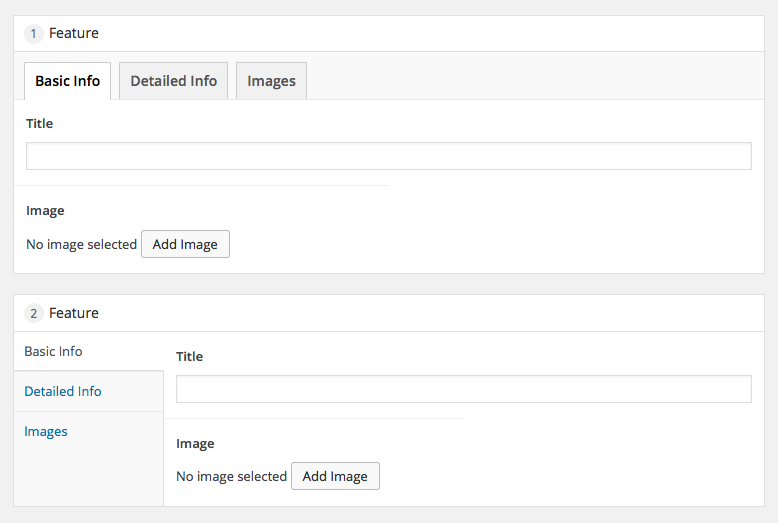 Changes the tab style from a top aligned row to a left aligned sidebar. Theleft alignedoption will be ignored if the field group appears in a table element (editing a user, attachment, taxonomy or field group label setting on left). -
