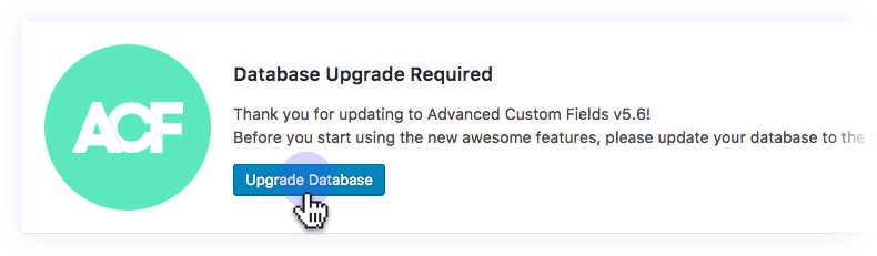 Last but not least, you will be prompted for a Database Upgrade. ACF 5 will configure some settings and ready your fields!